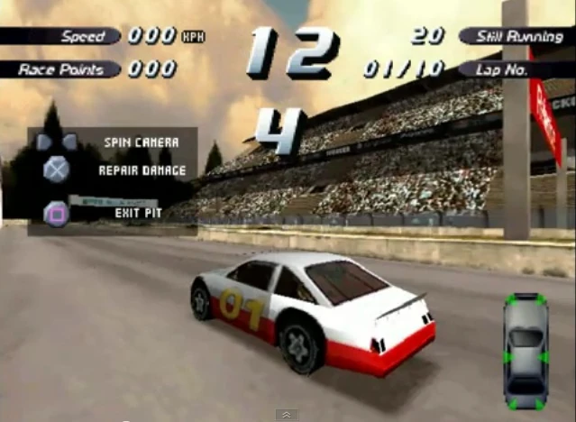 The pit stop can be useful in a Wrecking Racing race when the player's car is almost wrecked, allowing it to be fixed so that the player can more comfortably score points. It may also be useful in Stock Car, depending on the car's health situation and the risks of it becoming wrecked and overtaken by opponents.